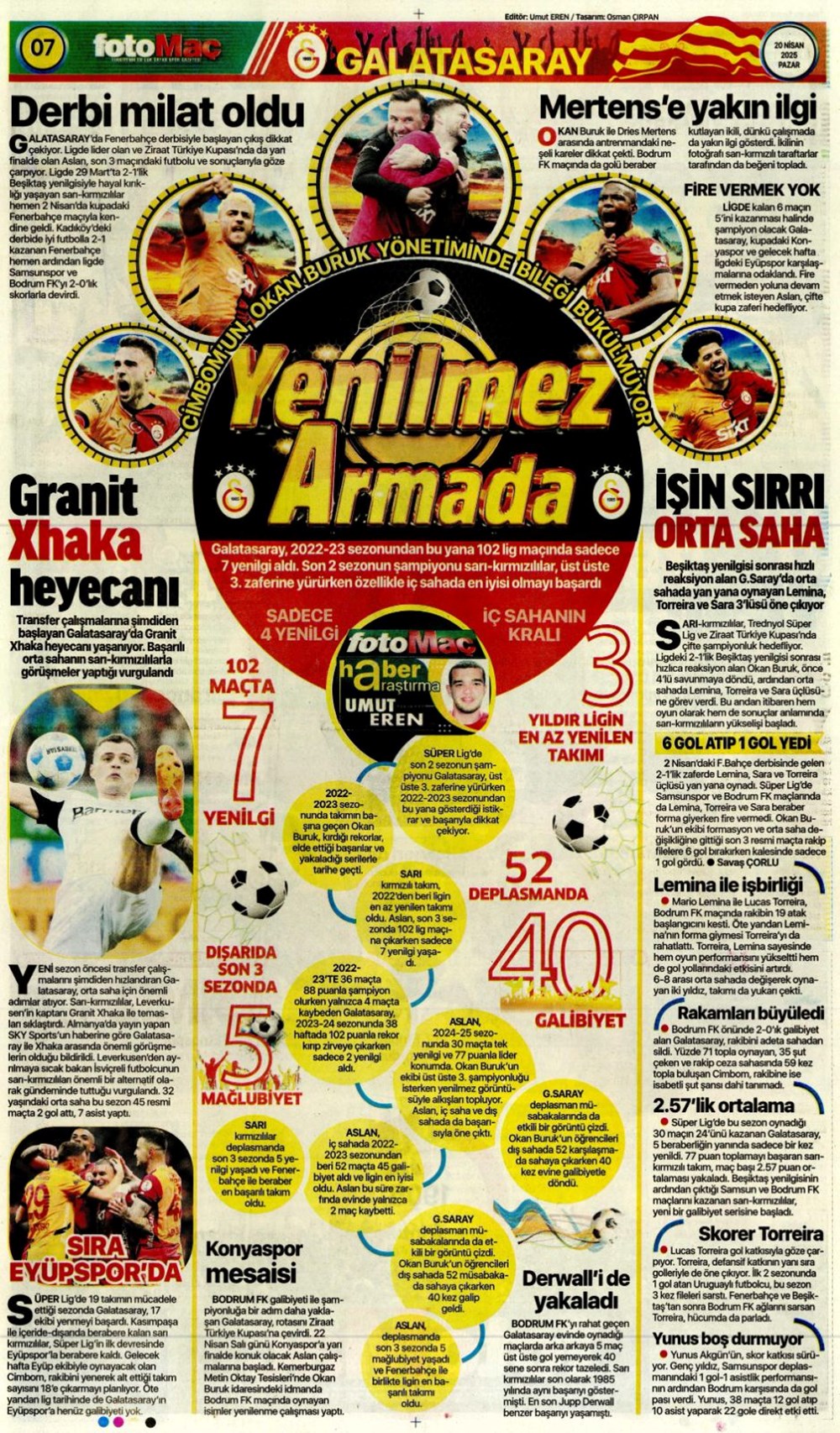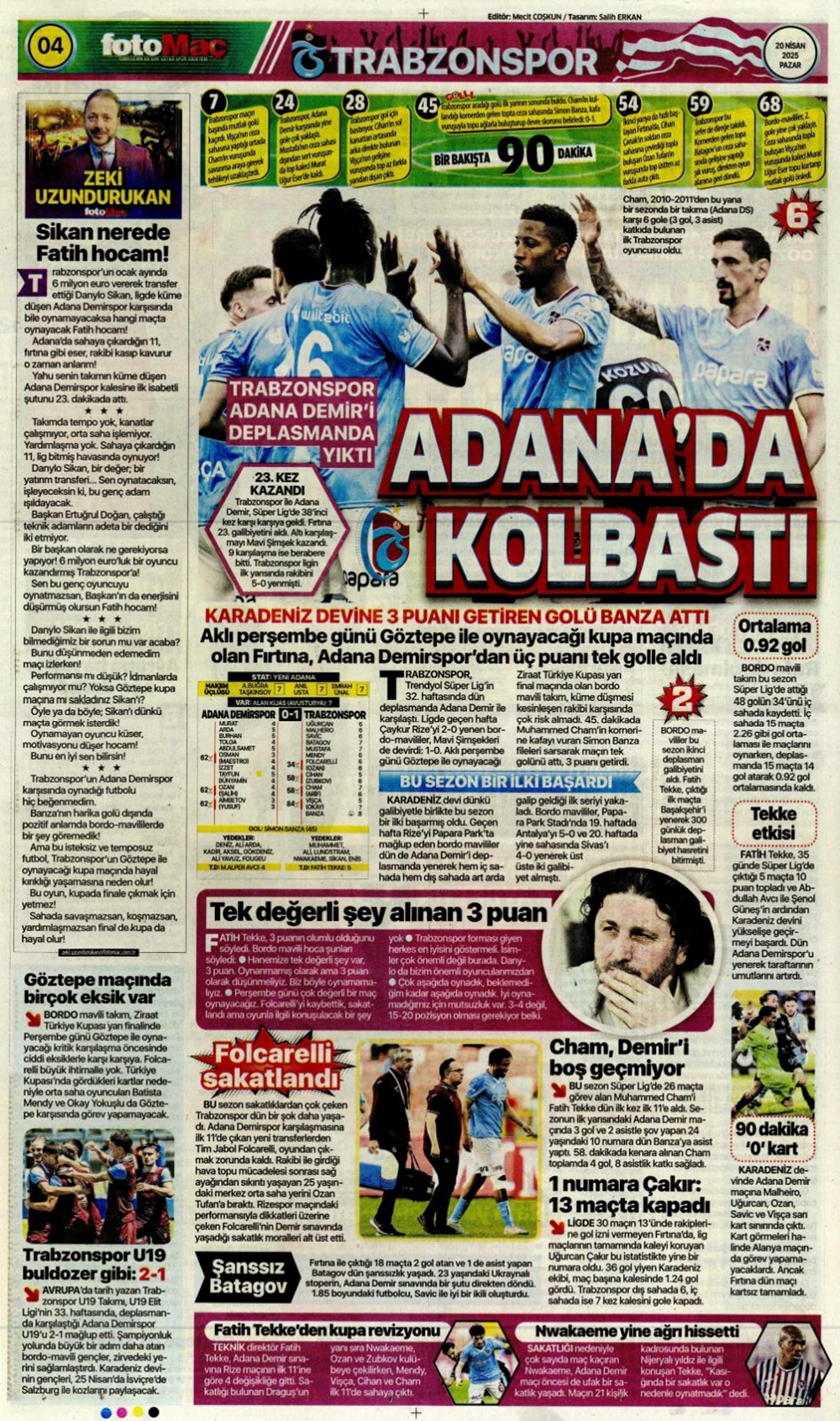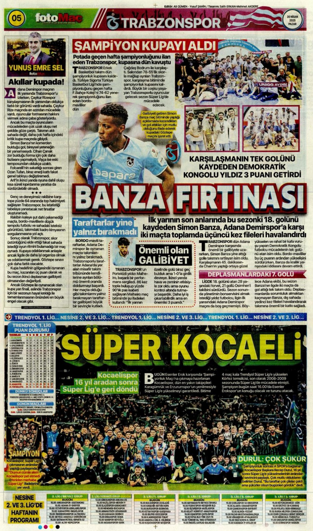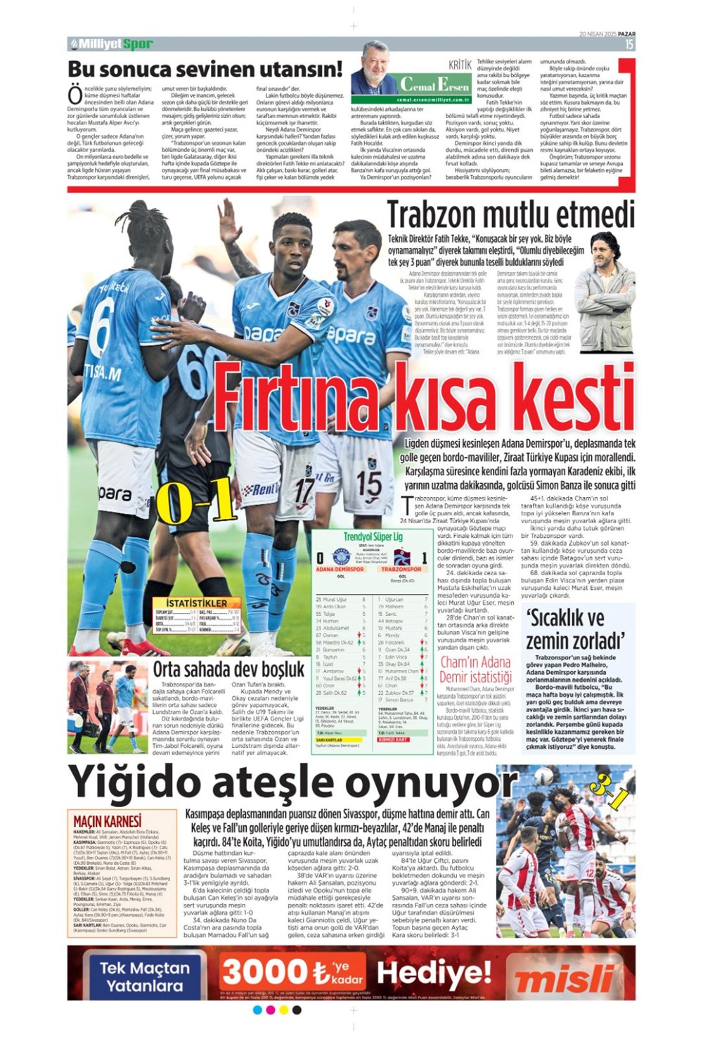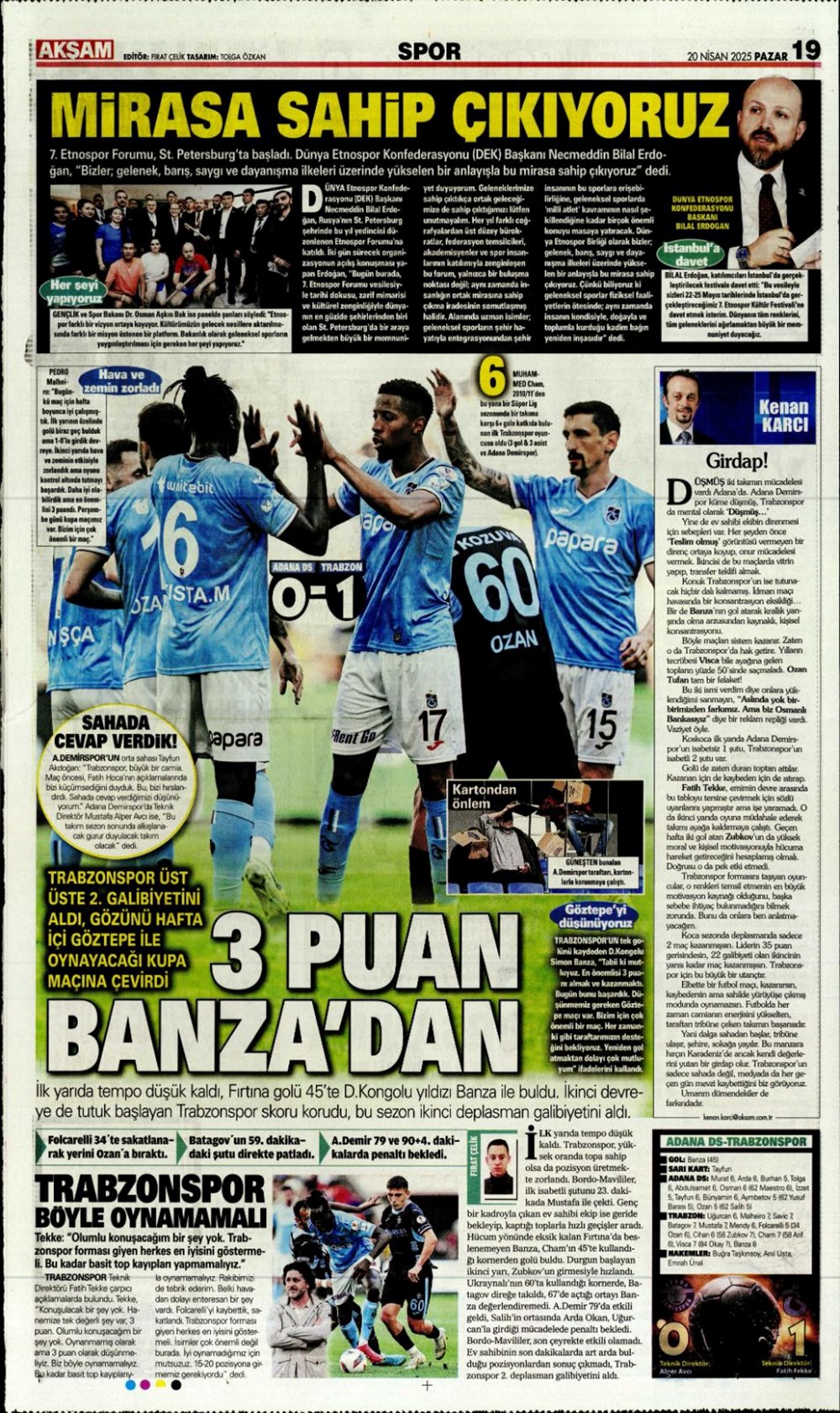 “Kartal’a İzmir’de soğuk duş” (20 Nisan 2025 spor manşetleri)Günün spor manşetlerinde, spor gündemiyle alakalı en yeni gelişmeler ve transfer haberleri belli oldu. 20 Nisan 2025 tarihli gazetelerin spor sayfalarına, Beşiktaş, Fenerbahçe, Galatasaray ve Trabzonspor’un haberlerine, 1 dakikada göz atın.